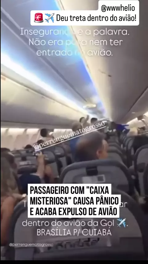 Um passageiro causou pânico em um voo que saía de Brasília com destino a Cuiabá ao embarcar com uma “caixa misteriosa”. 😳📦 Antes mesmo da decolagem, o clima ficou tenso. Passageiros se levantaram, reclamaram e pediram a retirada do homem da aeronave. Segundo relatos nas redes, o medo tomou conta do avião. O homem acabou sendo expulso, mas até agora ninguém sabe o que tinha dentro da tal caixa. 🤔 👉 Insegurança ou exagero? O que você acha? ➡️ Siga: @wwwhelio