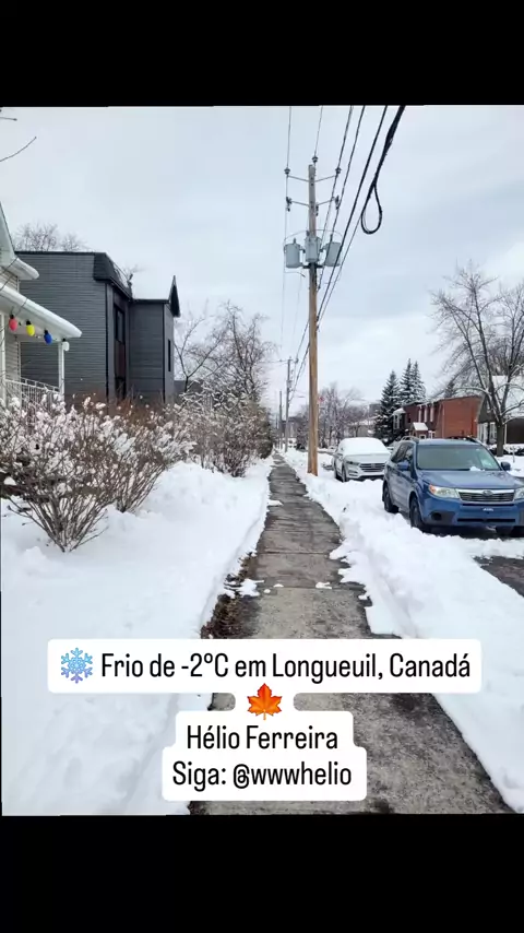 ❄️ Com -2°C em Longueuil, no Canadá 🍁, a paisagem se transforma. A neve cai silenciosa e tudo fica mais bonito, mais calmo… um cenário que parece pintura. Frio lá fora, mas o coração fica aquecido com momentos simples que a vida oferece. ☕❄️ Hélio Ferreira Siga: @wwwhelio
