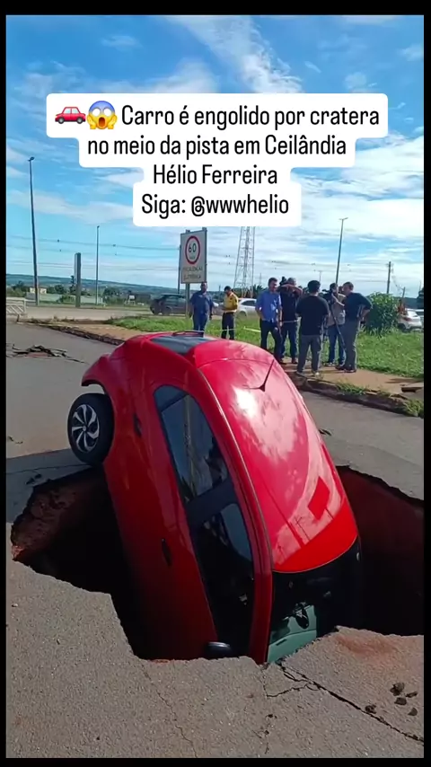 Redação 🚗😱 Cena curiosa em Ceilândia Uma situação impressionante chamou a atenção de quem passava pela região: um carro acabou sendo praticamente engolido por uma cratera que se abriu no meio da pista. O veículo ficou preso no buraco, causando susto e curiosidade entre moradores e motoristas que passavam pelo local. Além do risco para quem trafega pela via, o caso levanta alerta sobre as condições do asfalto e a necessidade de manutenção nas ruas da cidade. Felizmente, ninguém ficou ferido no