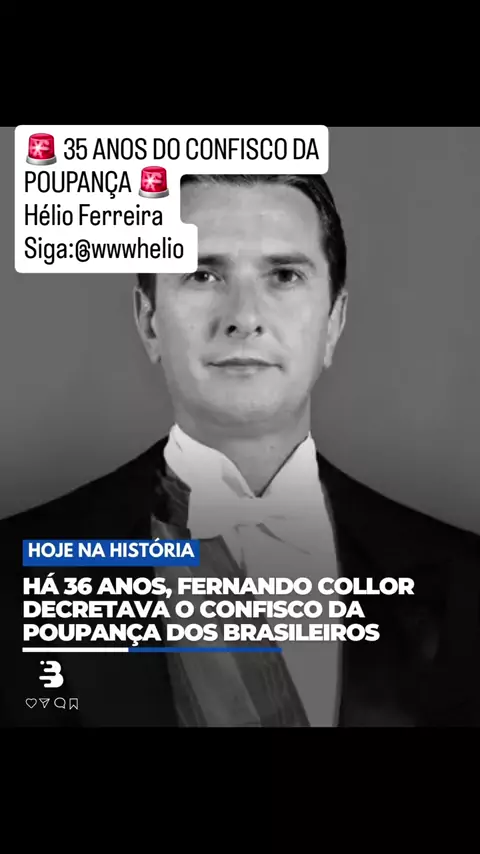 Hoje faz 35 anos de um dos episódios mais revoltantes da história econômica do Brasil 🇧🇷 Em 1990, o então presidente Fernando Collor de Mello simplesmente bloqueou o dinheiro da poupança dos brasileiros. 💸❌ Gente que trabalhou a vida inteira viu suas economias sumirem da noite pro dia, sem aviso, sem respeito, sem alternativa. Foi um confisco cruel, que destruiu sonhos, quebrou famílias e deixou marcas até hoje na memória de quem viveu aquele absurdo. 😡 O Plano Collor foi vendido como soluçã