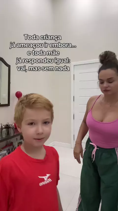 Toda criança já ameaçou ir embora… e toda mãe já respondeu igual: ‘vai, mas sem nada #humor #meme #maternidade #infancia