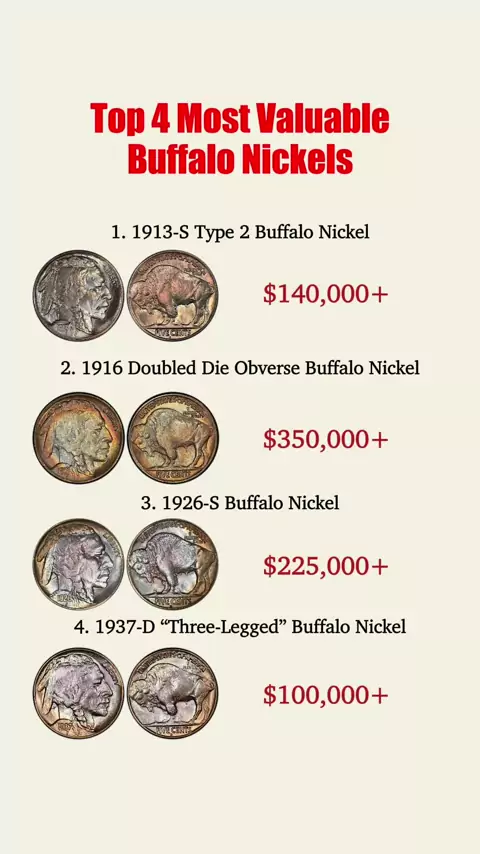 Top4 Most Valuable Buffalo Nickels #coin #dollar #money