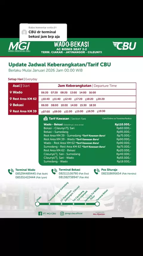 Membalas @entin.01 jadwal bus CBU wado - bekasi sumedang - bekasi