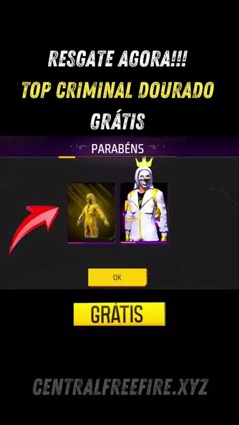 TOP CRIMINAL DOURADO CHEGOU NO FREEFIRE! Resgate agora mesmo! #FreeFire #fF #codiguin #garena