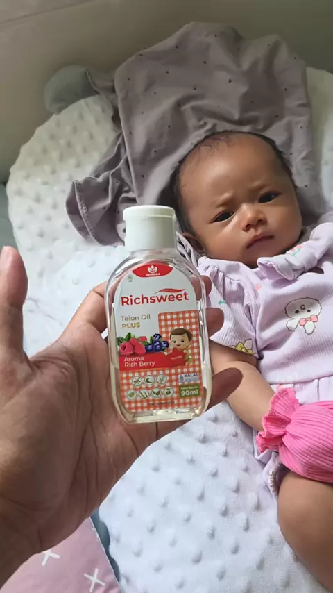 Perlindungan sampai 12 JAM ⏰ Anti nyamuk 🦟 + Ekstrak daun bidara 🌱 Hangatnya pas, bikin si kecil nyaman & tenang 💛 #Richsweet #minyaktelonplus
