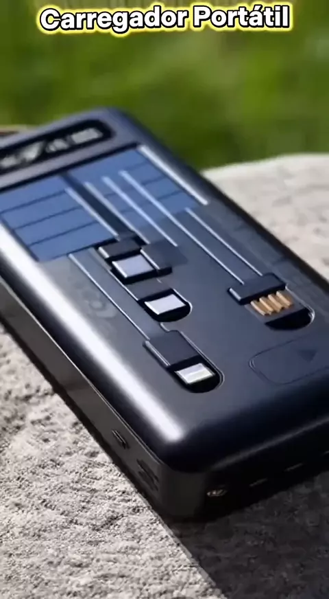 Carregador Portátil Power Bank Solar 20.000mah Com cabos 5 Em1 LED lanterna 5.022 Vendidos Preço R$76,99 #fyp #viral #foryou #kwai #powerbank