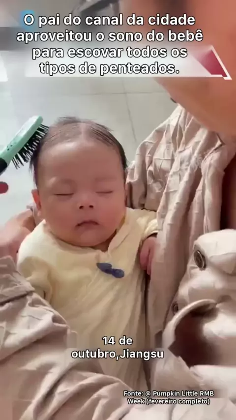 O pai aproveitou o sono do bebê para escovar todos os tipos de penteados, o que foi jogado fora.