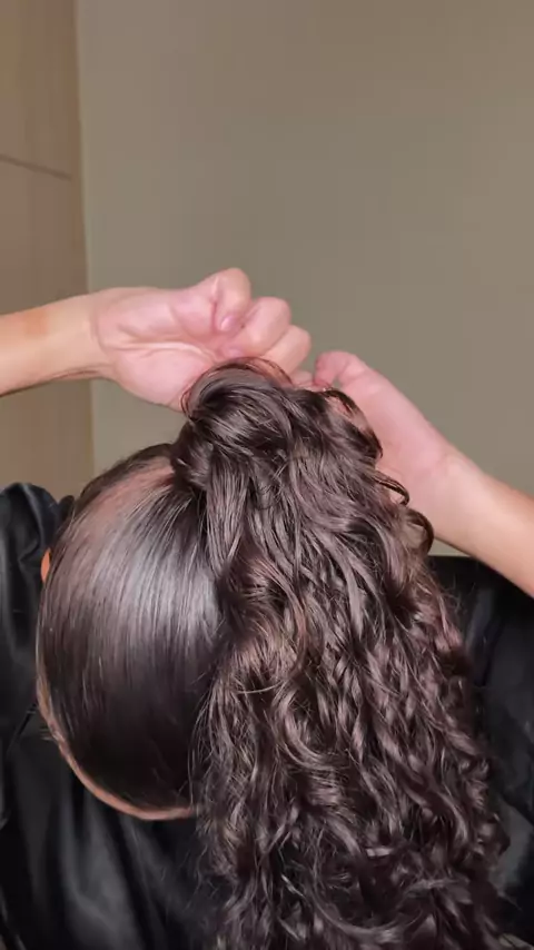 Esse truque no meio rabo deixa ele muuuuito mais lindo, fala serioooo! 🌟🌟🌟💋🩷 #penteado #penteadofacil #penteados #penteadocacheado #penteadosemtracao #truque #cabelocacheado #meiorabo #meiorabocacheado #penteadocomtrança #curlyhair #cachos #waves #viral