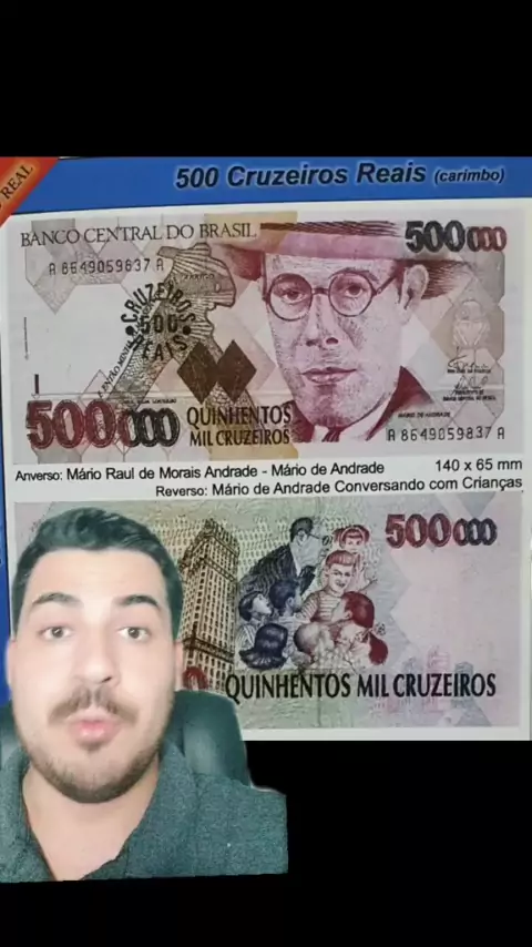 Quanto vale a cédula de Quinhentos mil cruzeiros reais do Mario Andrade? Você tem? #moedasenotasraras #colecionismo #notasantigas2023 #moedasraras