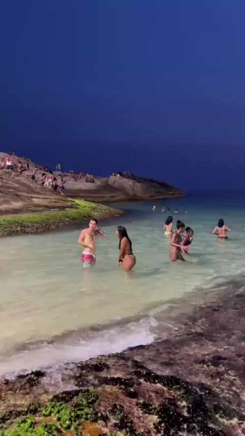 Praia do Arpoador, no Rio de Janeiro, à noite. #praia #verão #riodejaneiro #🥵calor #diversao