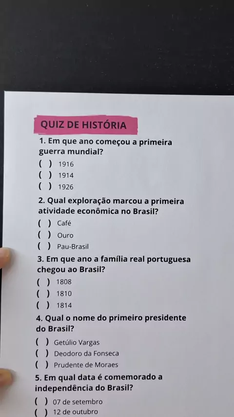 Quiz de história. #quiz #historia #estudos #teste #aprender