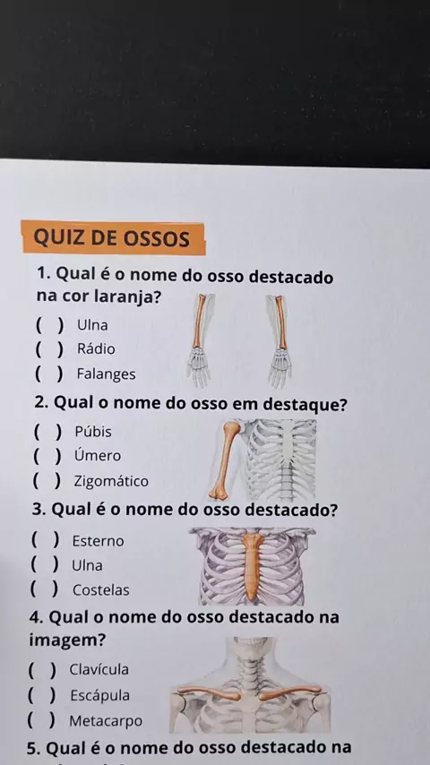 Quiz de ossos 🦴 Duvido você acertar todas 😁 #quiz #anatomia #teste #estudos #fy