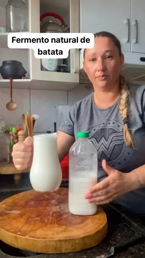 Fermento natural de batata 😍 #fermento #food #fy #fyp #viral . . Fermento natural Primeira etapa 1 litro de água 1 batata media 1 colher de sobremesa de sal 4 colheres de sopa de farinha de trigo 5 colheres de sopa de açúcar Bater tudo e deixar em uma garrafa tampada por 4 dias Segunda parte Repetir a primeira etapa e juntar com o fermento da garrafa misturar bem e tirar um litro e voltar pra garrafa e deixar por mais 4 dias Terceira etapa Repetir a primeira etapa juntar com o fe