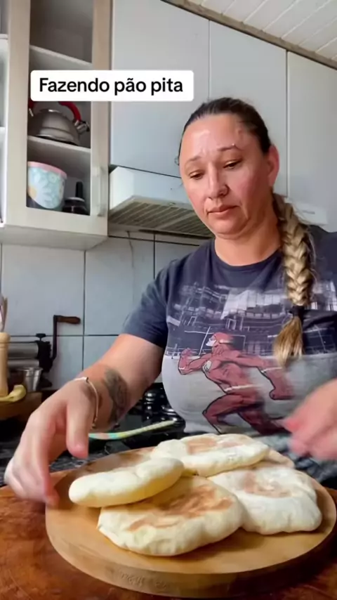 Pão pita ou pão sírio é a opção perfeita para o seu lanche ou para servir de entradinha acompanhado de uma bela coalhada ou uma pasta de grão de bico. Ingredientes 1 xícara de água 4 colheres de sopa de azeite ou óleo 1 colher de sobremesa rasa de sal 10gr de fermento biológico 400gr de farinha de trigo