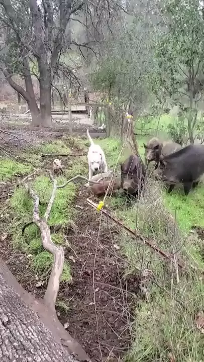 Pitbull atacando javali
