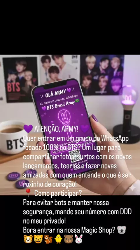 Brasil ๐Ÿ’š๐Ÿ’™๐Ÿ’› Sagitariana.๐Ÿ˜Š Amo BTS ๐Ÿ’œ๐Ÿ˜๐Ÿ’œ venha participar do meu grupo do whatsapp Armys ๐Ÿ’œ https://chat.whatsapp.com/Ii3BSlpxdB76coA2WlYSkF