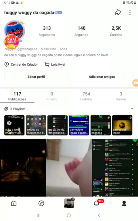 eu sou o huggy wuggy da cagada posto vídeos legais e coloco no kwai