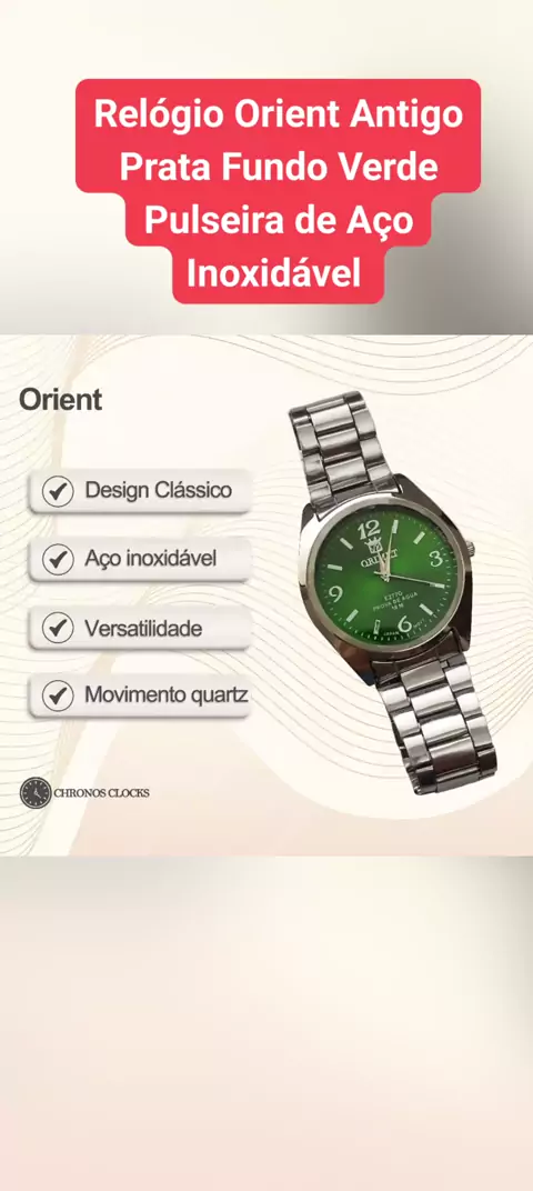 Relógio Orient Antigo Prata Fundo Verde Pulseira de Aço Inoxidável #ecomerce #CrescerNaFamília