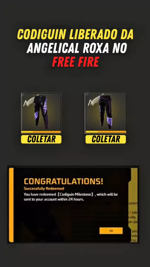 Finalmente!! codiguin da calça angelical roxa liberado no free fire #freefire #codiguin #codeff
