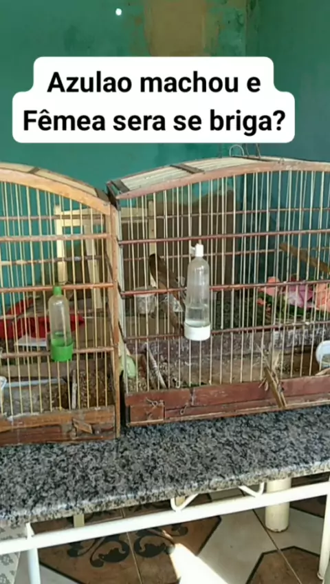 Azulao macho e fêmea testando