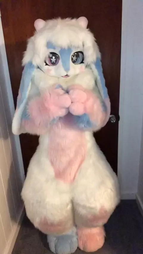 It is hard doing this with my big bun legs. Anyways Happy Valentine's ! love ya guys:3 #furry #fursuit #kemono #kemonofursuit #fyp
