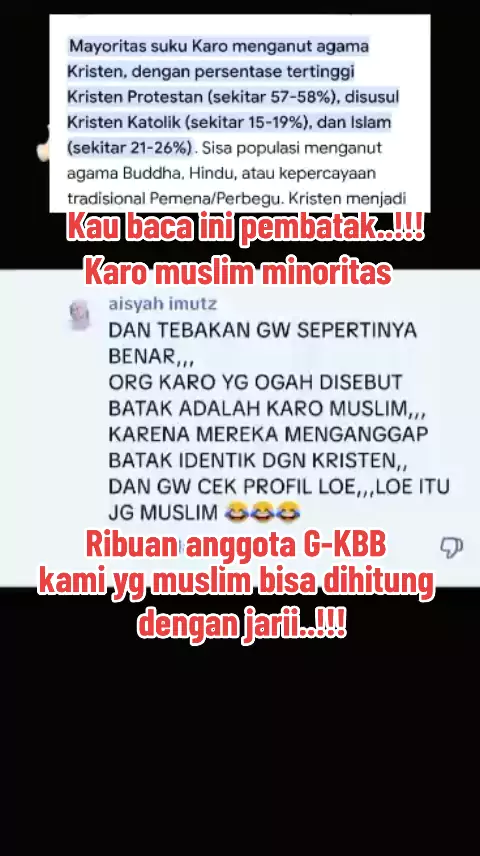 komentar mu ini jelas menunjukkan kebodohan muu..!!! jadi org Karo yg kristen yg menyatakan dirinya Karo bkn Batak, mereka malu disebut batak Karena Batak identik dgn kristen..!!! terlalu motu ko#KARONESE#SUKUKARO#KAROPRIDE#KAROISNOTBATAK#ZONAKALAKARO
