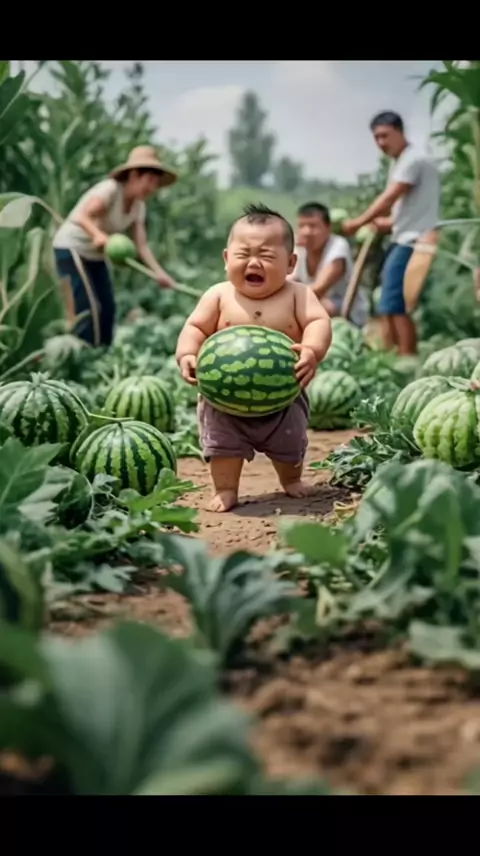 bebê e a plantação de melancia ☺️ #baby #ia #Interressante #Comida #maisviews