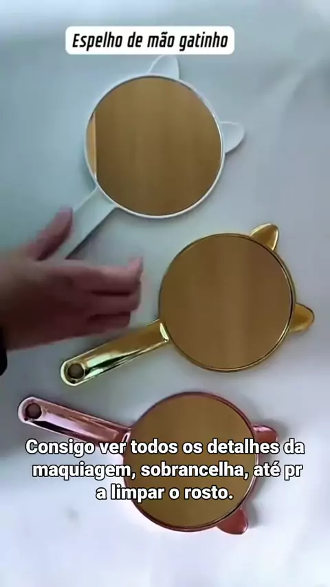 Espelho de Mão Gatinho: Adeus, Maquiagem Borrada! #espelhodemao #maquiagem #gatinho #beleza #praticidade