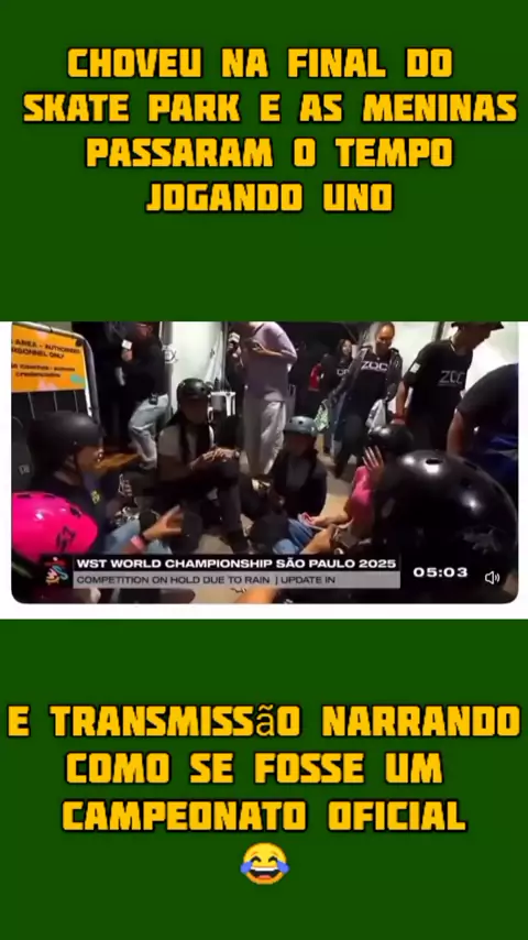CHOVEU NA FINAL DO SKATE PARK E AS MENINAS PASSARAM O TEMPO JOGANDO UNO, E A TRANSMISSÃO NARRANDO COMO SE FOSSE UM CAMPEONATO OFICIAL 😂 #2025internationalshortvideocompetition #viral #maisviews #campeã
