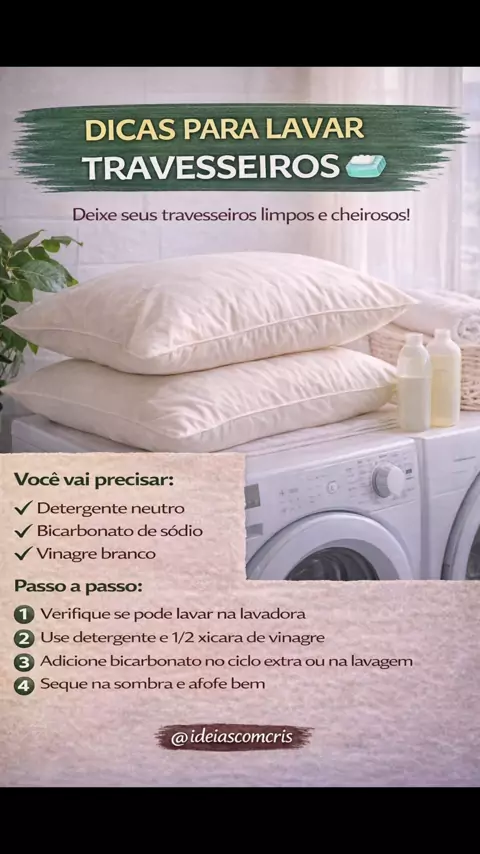 Dicas simples para lavar travesseiros. Travesseiros limpos e cheirosos fazem toda a diferença 😍 Com esses cuidados, eles ficam como novos! Salva pra fazer depois Compartilha com quem ama casa limpa. #DicasParaCasa #LimpezaFacil #CasaOrganizada #TruquesDomesticos