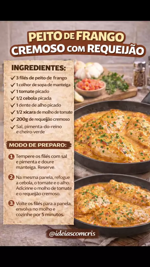 Frango cremoso que todo mundo ama. Receita fácil, rápida e cheia de sabor Esse frango fica cremoso demais! Salva pra fazer. Compartilha com quem ama frango. #ReceitaFácil #FrangoCremoso #AlmoçoPrático
