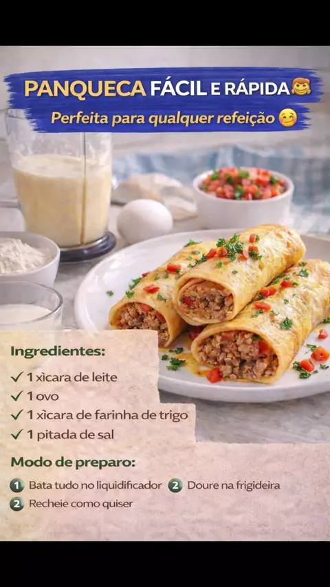 Panqueca fácil e rápida para o dia a dia. Receita simples que salva qualquer refeição. Rápida, prática e deliciosa! Salva pra fazer depois Compartilha com quem ama panqueca 🥞 #ReceitaFácil #PanquecaCaseira #ComidaRápida