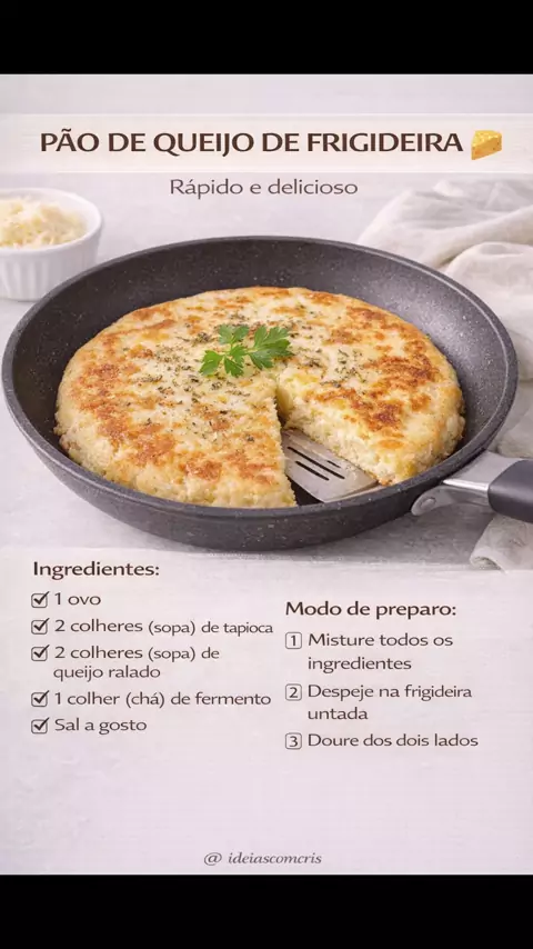 Pão de queijo de frigideira rápido. Receita prática, rápida e deliciosa. Perfeita pro café da manhã ou lanche! Salva pra fazer depois. Compartilha com quem ama pão de queijo 🧀 #PaoDeQueijo #ReceitaFacil #LancheRapido #CafeDaManha #ReceitasFaceis