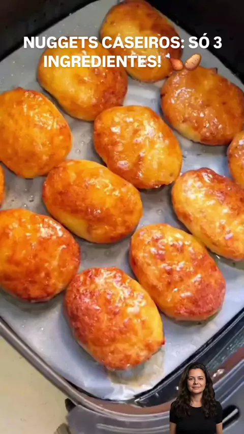 Nuggets de Frango e Batata: O Lanche Perfeito na Air Fryer! Ingredientes: 500g de Peito de Frango (1 peça) ​1 Batata média (descascada) ​1/2 Cebola roxa ​2 colheres de sopa de Amido de Milho ​Sal e temperos a gosto ​Passo a Passo (Rápido) ​Batata no processador: frango, batata, cebola, amido e temperos. ​Bata tudo até virar uma massa. ​Modele os nuggets com a mão. ​Air Fryer: 180°C por 15-20 min (pincele azeite para dourar). ​#nuggetscaseiros #receitafacil #airfryer #frangocombatata #petisco
