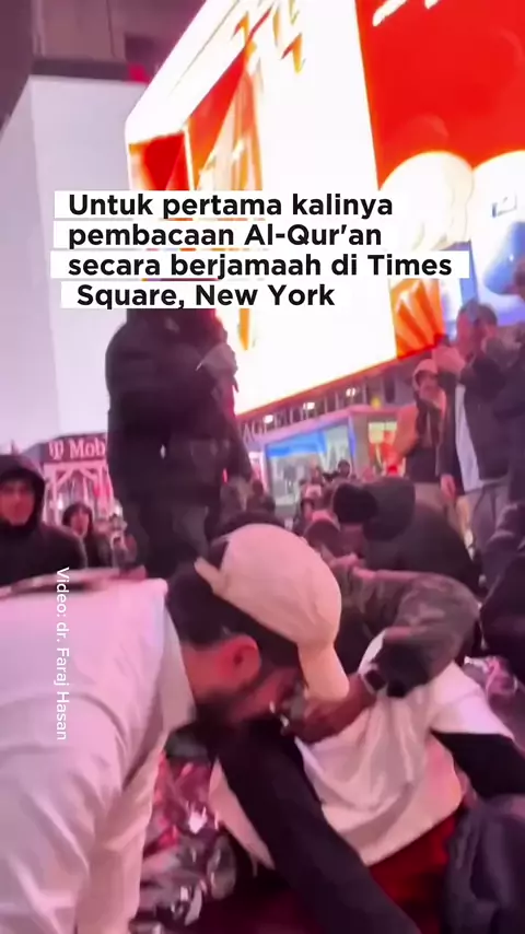 Untuk pertama kalinya dalam sejarah, komunitas Muslim di AS baca Al-Qur'an berjamaah di Times Square, New York, Ahad (22/2/2026).