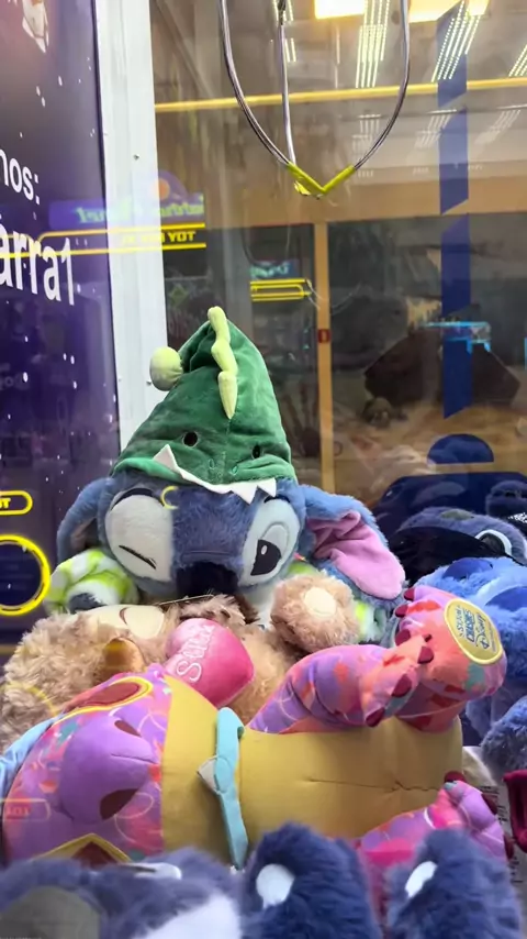 Peguei o Stitch vestido de dinossauro! Novidade capturada na máquina de pelúcias do @OGARRAPlanet #maquinadepelucias #clawmachines #maquinadeurso #plush #plushies #stitch #stitchplush