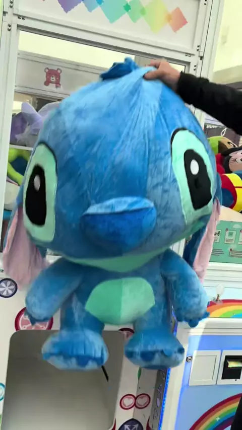 Stitch de quase 1 metro saindo da máquina de pelúcias gigantes no arrasto! #maquinadepeluches #maquinadepelucias #stitch #stitchplush #megaplush @MvrPelúcias