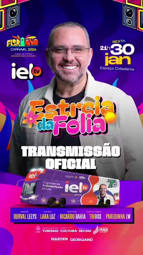 IELTV DESEMBARCA EM FLORIANO PARA A ESTREIA DA FOLIA 2026 Floriano entra de vez no circuito do Carnaval 2026 com transmissão oficial da IELTV. A cidade será palco da Estreia da Folia, com cobertura completa e ao vivo do show de Durval Lelys, levando música, energia e alegria para quem está na avenida e para quem acompanha de casa. Estrutura de ponta, equipe completa e padrão nacional de transmissão para mostrar Floriano para todo o Piauí e para o Brasil. É Carnaval com organização, visibilida...