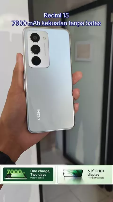Redmi 15 Baterai 7000 mAh bisa jd Power bank 18W,. Layar 144Hz pertama midrange, Ip64 cocok buat kerja apalagi ojol krn sudah pake layar Gorilla Glass 3 Tahan benturan Dan Baterai awet tanpa harus sering ngecass.#redmi15#redmi#xiaomi##gadget