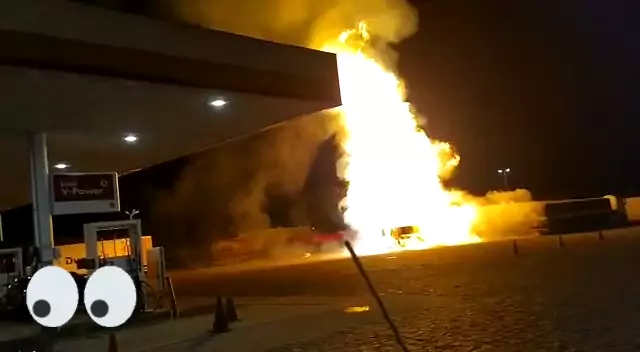 caminhão pega fogo, e esplode em posto de gasolina.