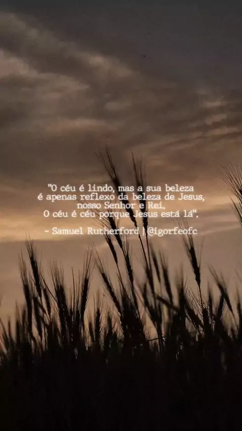 "O céu é lindo, mas a sua beleza é apenas reflexo da beleza de Jesus, nosso Senhor e Rei. O céu é céu porque Jesus está lá". Samuel Rutherford