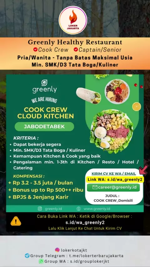 Lowongan Kerja Greenly Healthy Restaurant #lokercook #lokerkitchencrew #lokercaptain #lokerseniorkitchen #lokerkuliner #lokerjakarta #infolokerjakarta #lokerjakartaterbaru #lokerjakarta2024