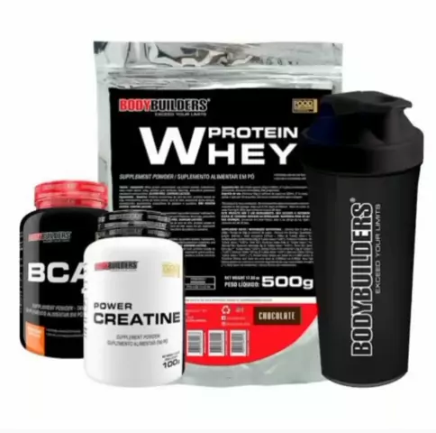 Kit Whey Protein 500g, BCAA 4,5 100g, Power Creatine 100g, Coqueteleira – Bodybuilders, link do produto: https://shope.ee/5Us6CmiqIq