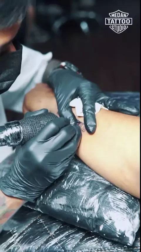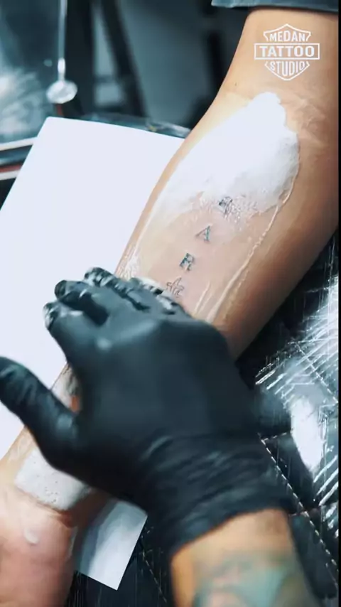 Ada yang pacaran cuma update story Ada yang pacaran sampai update kulit asikkkk🔥🔥 Hari ini Medan Tattoo Studio kedatangan klien yang keliatannya sayang banget sama pacarnya, gimana ga sayang, abang ini udah yakin banget buat abadiin nama pacarnya dalam bentuk tato. Langsung aja Medan Tattoo Studio kerjain, dengan konsep minimalis dan gunain Arabic font. Keliatan simpel tapi hasilnya? Estetik parah!! Kita berharap hubungan Abang dan Kakak ini awet kayak hasil tato yang kita buat yagesya👌 Kalo...