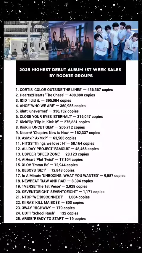Highest Debut Album 1st Week Sales by 2025 rookie Group##kpop#5thgen#rookie#cortis#hearts2hearts#idid#ahof#idntt#closeyoureyes#kickflip