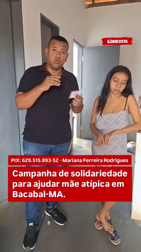 O repórter André Luís voltou à residência da Mariana, em Bacabal, e disponibilizou a chave pix para quem quiser ajudá-la. Ela, como todos já sabem, é mãe atípica e vem enfrentando muitas dificuldades, inclusive dentro da própria família. CHAVE PIX: 629.515.893-52 - Mariana Ferreira Rodrigues.