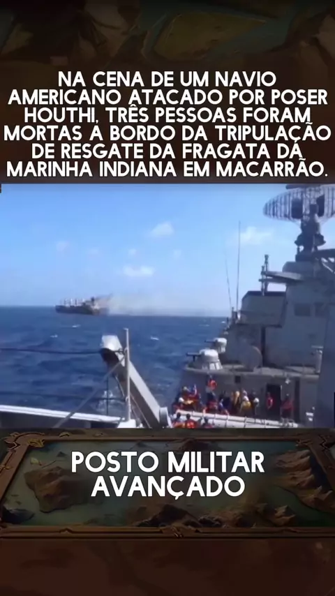 A cena de um navio americano atacado por poser houthi é pintada em macarrão, a cena da tripulação de resgate da fragata da Marinha indiana.
