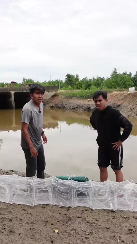 Panen udang, belut dan ikan hasil pasang bubu naga 15 meter di muara sungai yang surut. #panen #udang #belut #ikan #bubu