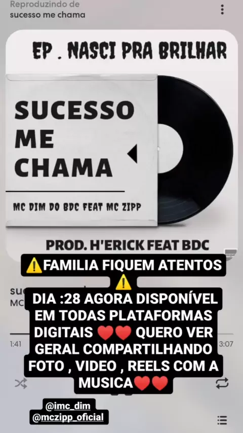 FAMILIA ME SEGUE NO INSTAGRAM PARA FICAR POR DENTRO DOS LANÇAMENTOS❤️ @imcdim (MC DIM DO BDC) 🌟SUCESSO ME CHAMA🌟DISPONÍVEL NAS PLATAFORMAS DIGITAIS ♥️🙏