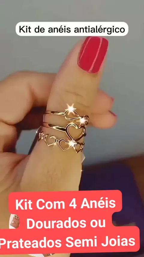 #Kit Com 4 Anéis Dourados ou Prateados Semi Joias
